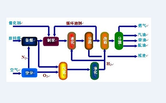 現(xiàn)代新型煤制油化工技術(shù)是以煤炭為基本原料,經(jīng)過(guò)氣化、合成、液化、熱解等煤炭利用的技術(shù)途徑,生產(chǎn)潔凈能源和大宗化工產(chǎn)品,如合成氣、天然氣、柴油、汽油、航空煤油、液化石油氣、聚乙烯、聚丙烯、甲醇、二甲醚等。改變傳統(tǒng)的煤炭燃燒、電石、煉焦等以高污染、低效率為特點(diǎn)的傳統(tǒng)利用方式。